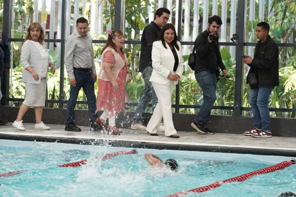 Al referirse a la rehabilitación de infraestructura deportiva en la demarcación, la alcaldesa enfatizó el rescate de espacios emblemáticos y su adaptación a las necesidades actuales de la comunidad: “Hoy podemos decir de la alberca Leandro Valle, de la Agrícola Oriental y con orgullo, porque transformamos este espacio emblemático que abrió sus puertas hace más de cinco décadas y hoy renace como un lugar digno y moderno, pensado para el bienestar, la salud y la convivencia de todas y todos”.