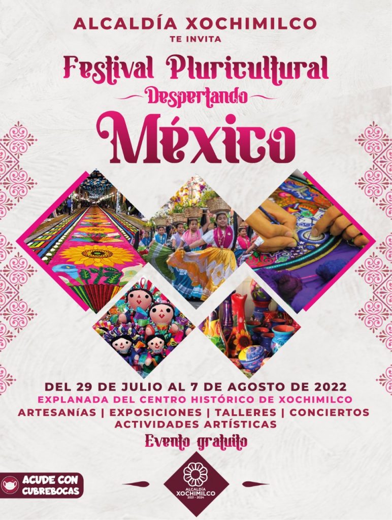 Con el objetivo de intercambiar y promover tanto la cultura y gastronomía de Xochimilco como de los estados de Tlaxcala, Querétaro, Hidalgo, Oaxaca, Michoacán, Chiapas y Veracruz, la Alcaldía Xochimilco será sede del Festival Pluricultural “Despertando México” que se realizará del 29 de julio al 7 de agosto.