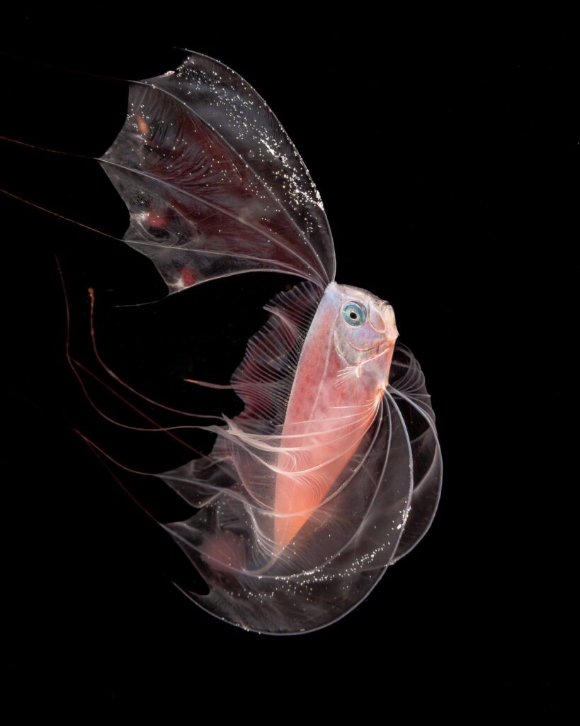 “Nos dirigimos a una zona situada a unos 3 kilómetros de la costa, donde el fondo marino tiene más de 300 metros de profundidad. Una vez que llegamos al punto de inmersión, desplegamos un sistema de iluminación flotante que sirve de centro de inmersión y atrae la vida del plancton”, describe Stansfield.