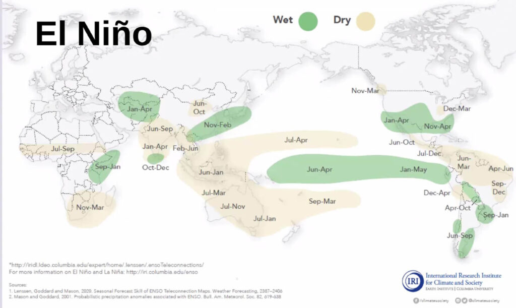 - Aunque no se le puede atribuir todo al efecto de El Niño, se prevé sequía para la primavera durante los meses de marzo, abril y mayo con condiciones más calientes y secas