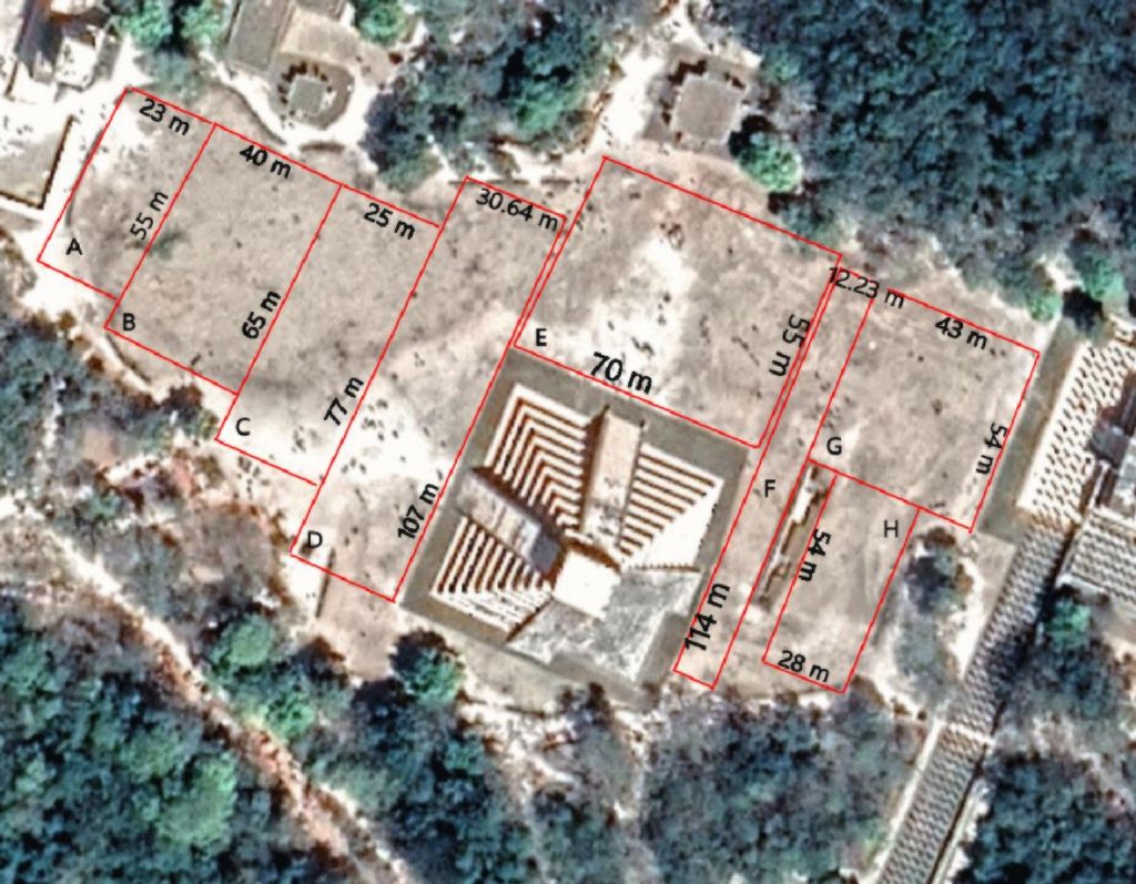 De acuerdo con los coordinadores del proyecto, adscritos a la Dirección de Estudios Arqueológicos del INAH y al Posgrado de Arqueología de la ENAH, Denisse Argote Espino y Pedro López García, respectivamente, aunque la explanada no tiene una forma cuadrangular o rectangular precisa, se sabe que mide aproximadamente 9 mil metros cuadrados (m2).