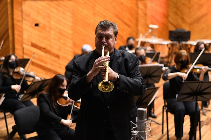 La presentación continuó con el Concierto para trompeta en Mi Bemol Mayor, de Johann Baptist George Neruda, con el trompetista John Urness, integrante de la OSEM, como solista, a quien el público aplaudió por varios minutos tras su interpretación.