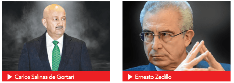 • Inserción en la globalización; renegociación de la deuda externa con base en las políticas de ajuste estructural neoliberal recomendadas por el FMI; internacionalización económica, apertura comercial y a la inversión extranjera; construcción de tratados y acuerdos comerciales internacionales, en especial el TLCAN; privatización de la banca nacionalizada y de empresas públicas (como el monopolio natural telefónico TELMEX); autonomía del Banco de México; desregulación financiera y apertura a la inversión extranjera en distintos sectores de la economía antes vedados; profunda crisis financiera de fin de sexenio, debido a la crisis política y al desequilibrio del sector externo por el déficit en cuenta corriente y la salida de capitales (1989-1994).