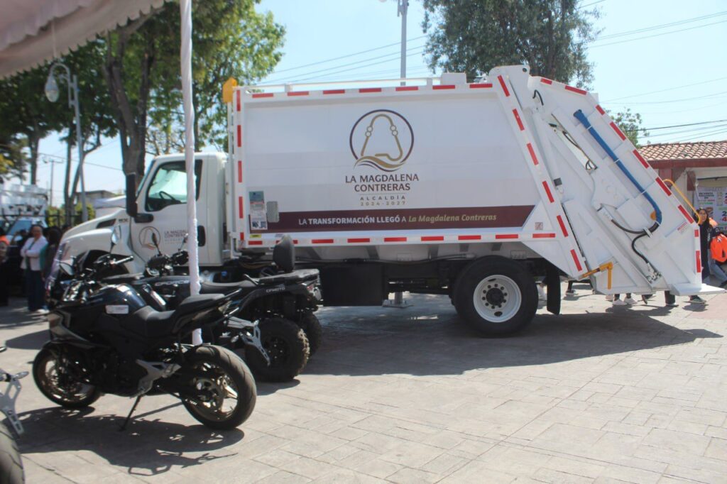Durante el acto, el alcalde, acompañado por integrantes de su gabinete y concejales, realizó la entrega simbólica de ambulancias, camiones, motocicletas, cuatrimotos, herramientas especializadas y equipo de cómputo, con el objetivo de fortalecer la capacidad operativa de la alcaldía y mejorar la atención a las y los vecinos.
