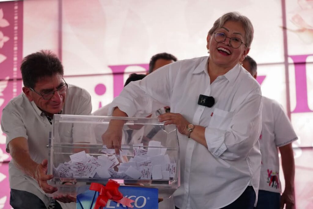 Durante los eventos realizados en distintas colonias del municipio, se rifaron refrigeradores, lavadoras, pantallas, electrodomésticos y otros obsequios entre las asistentes, quienes disfrutaron de un ambiente festivo lleno de sorpresas.
