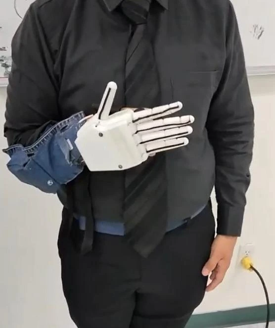 El dispositivo desarrollado permite controlar sus movimientos mediante sensores musculares, los cuales envían señales a pequeños servomotores que las transforman en movimientos precisos de la prótesis. Estos dispositivos son un mecanismo electromecánico que, gracias a un sistema de control interno, permiten controlar tres movimientos clave: calibración y flexión; cierre y apertura de la mano; y secuencias de movimientos coordinados, permitiendo que cada gesto sea natural y segur.