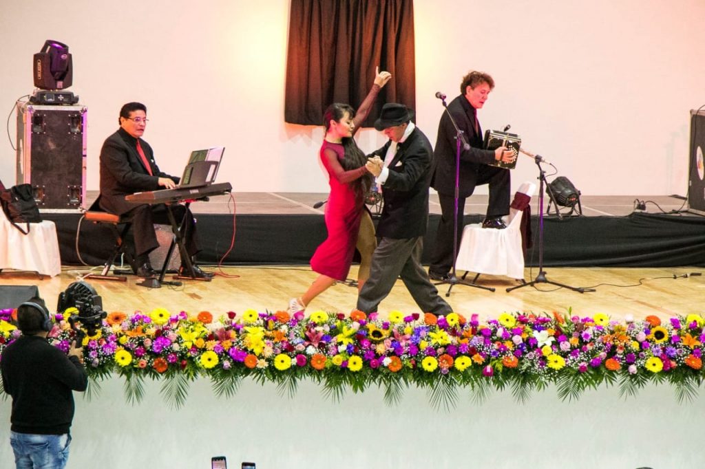 Al término de este número, el foro se deleitó con el espectáculo “Esto es tango”, donde danzaron dos parejas acompañadas de la magnífica interpretación de un trío de músicos, uno en el bandoneón, otro más en el piano y uno más al violín. El cantante encargado de prestar voz para estos tangos, sorprendió a los asistentes por su interpretación y aún más por su forma de interactuar con el auditorio.