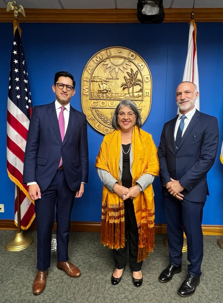 Para estrechar los lazos de cooperación con México y las autoridades condales, Velasco Álvarez se reunió con la alcaldesa del condado de Miami-Dade, Daniella Levine-Cava, así como con el comisionado José “Pepe” Díaz, presidente de la Junta de Comisionados del Condado y presidente del International Trade Consortium (ITC). En ambos encuentros se visibilizó la contribución económica y cultural de la comunidad migrante y se remarcó la importancia de la creciente inversión de empresas mexicanas en Florida.