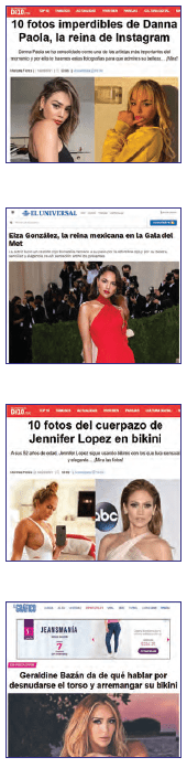 Además de su versión impresa tradicional también se cuenta con un portal electrónico dividido en cinco escenarios: “Noticias”, “Suplementos”, “Multimedia”, “Cuenta El Universal” y “Verticales”. En esta última se tiene acceso a sus otras publicaciones como “Aviso Oportuno”, “Confabulario”, “El Gráfico” y “De 10mx”. Al revisar sus contenidos durante el mes de septiembre de 2021, puede confirmarse la total ausencia de una perspectiva de género y la continuidad de un periodismo sexista, principalmente en “Espectáculos”, “El Gráfico” y “De 10mx”.