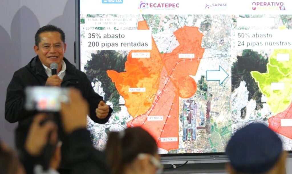 Afirmó que más de 275 mil vecinos de la Quinta Zona de Ecatepec ya reciben agua por la red y cerraron más de 50 puntos de huachicoleo.
