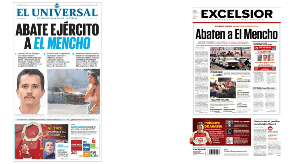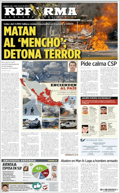 Algunos diarios lograron informar y plasmar fotos de lo mucho que ocurrió durante el enfrentamiento entre fuerzas de seguridad y narcotraficantes, de las reacciones violentas de las células del CJNG en al menos 20 estados del país, incluso el posterior traslado de los cuerpos de “El Mencho” y varios de sus sicarios a la Ciudad de México.