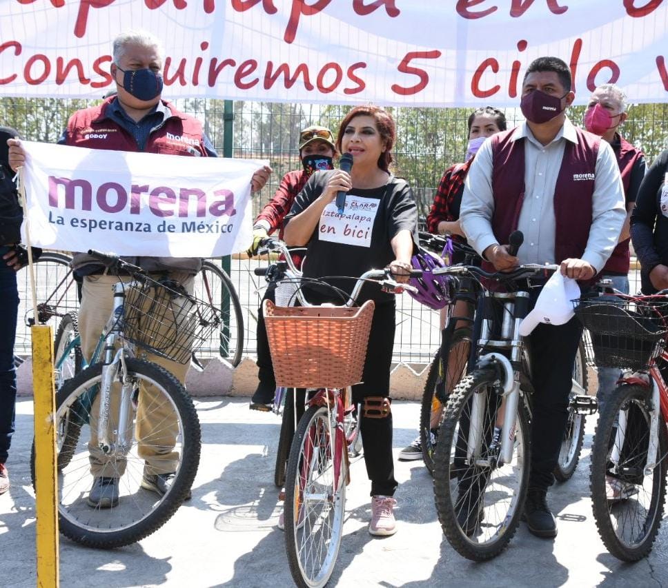 La candidata por Morena adelantó que promoverá la sustitución de automotores por bicicletas y que todas las actividades que se puedan realizar por medio de éstas, tengan el apoyo y la protección de la Alcaldía. También propuso a los candidatos a diputados locales que al estar en funciones impulsen presupuestalmente la construcción de infraestructura ciclista y peatonal, así como que legislen en favor de este grupo de la población.