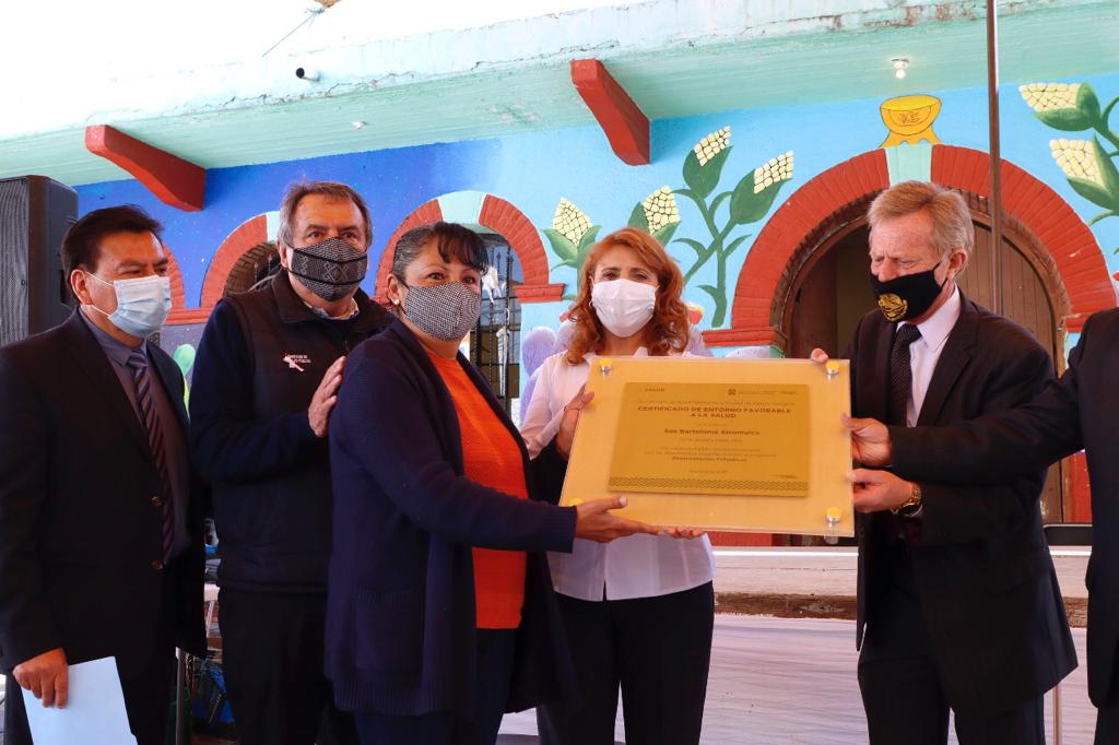 La Alcaldesa Judith Vanegas Tapia recibió la placa conmemorativa que certifica al pueblo de San Bartolomé Xicomulco como “Comunidad Promotora de la Salud”, que le otorgó la Secretaria de Salud de la Ciudad de México, a través de la Jurisdicción Sanitaria de Milpa Alta.
