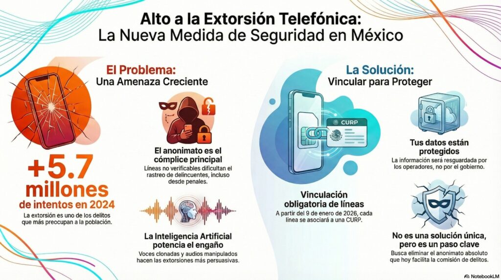 Es en ese contexto que, a partir del 9 de enero de 2026, México inició la obligación de vincular todas las líneas móviles a una persona física o moral con CURP y datos oficiales, como parte de una política pública en materia de seguridad que se reflejó en la misma Ley en Materia de Telecomunicaciones y Radiodifusión (artículos 103 y fracción III del 164).
