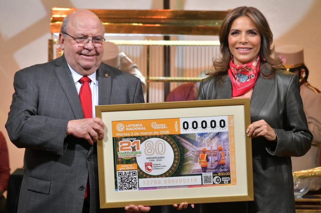 Durante su intervención, el presidente del XL Consejo Directivo del Colegio de Ingenieros Civiles de México, Mauricio Jessurun Solomou, subrayó que no todos los días una institución tiene la oportunidad de ver su historia reflejada en un símbolo tan profundamente arraigado en la cultura mexicana como lo es un billete de la Lotería Nacional.