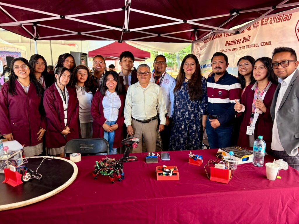 La explanada de la Alcaldía fue el escenario donde estudiantes de la Escuela Secundaria Técnica 46, “Estanislao Ramírez Ruiz”, demostraron su talento, presentándose como los campeones nacionales e internacionales en Robótica, premio otorgado en el año 2025, distinción que los pone a la vanguardia y demuestran que el compromiso y las ganas de salir adelante, son los elementos principales para sobresalir.