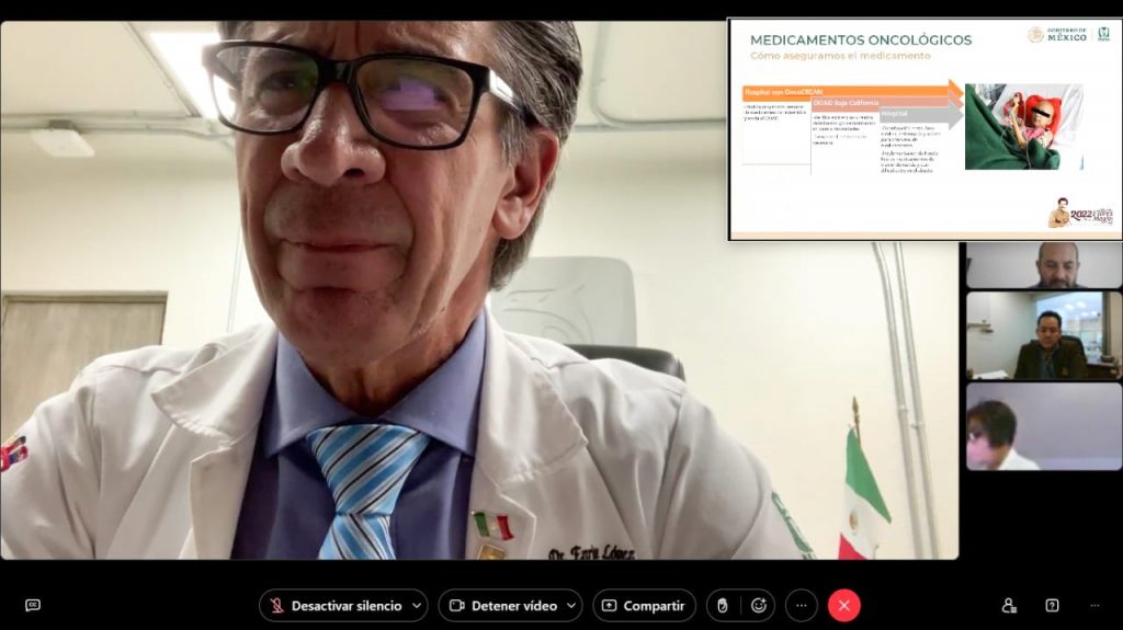 En sesión virtual, señaló que se implementan medicamentos base y nuevos fármacos para precisar terapias dirigidas, y adecuación de nuevas tecnologías de diagnóstico que permita reforzar el servicio que se le otorga al paciente oncológico.